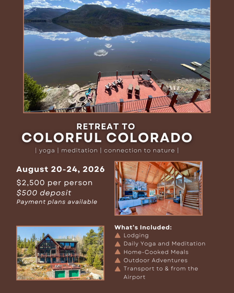 Join me and Dark Side Yoga (Victoria Amico) in beautiful Grand Lake Colorado for yoga, meditation, home cooked meals, and outdoor adventures. We are open for enrollment now and taking deposits. Don’t miss out! Reach out with any questions.